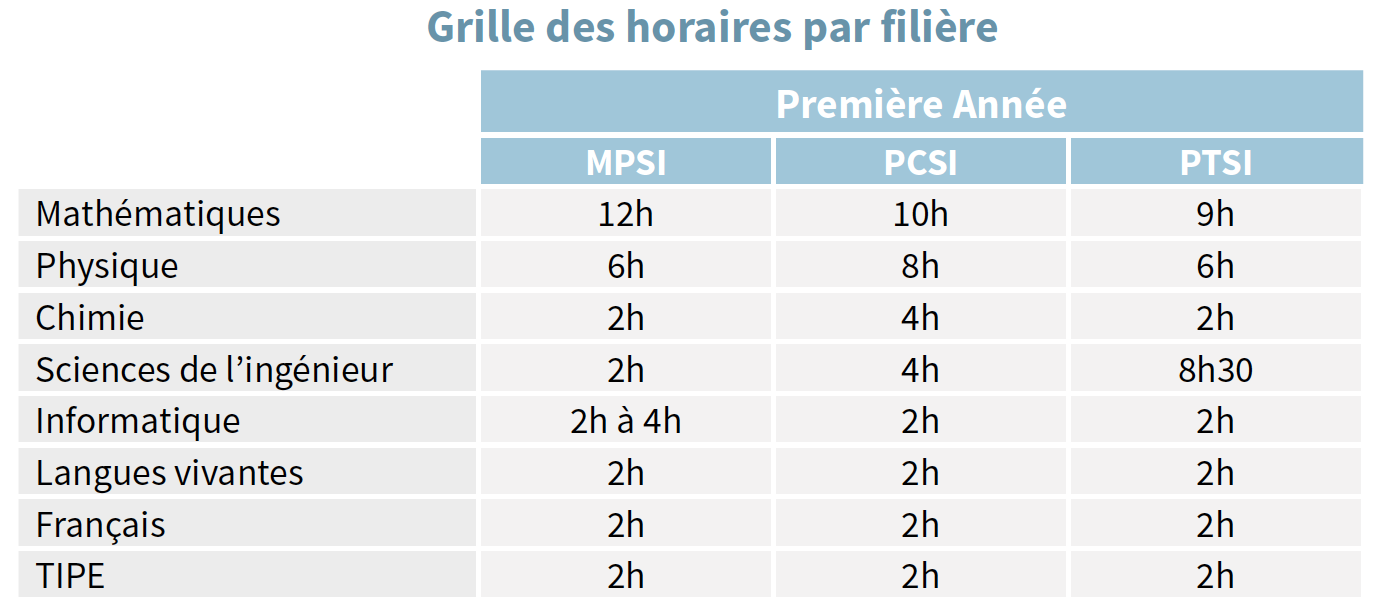 Les prépas MP (Maths Physique), PSI (Physique Sciences de l’Ingénieur), PC (Physique Chimie), PT (Physique Technologie)