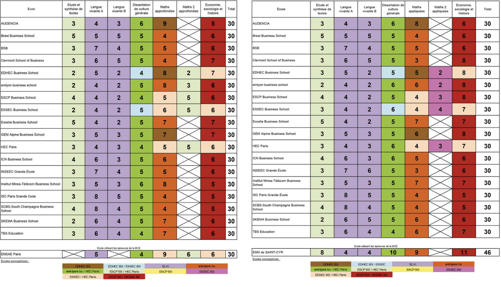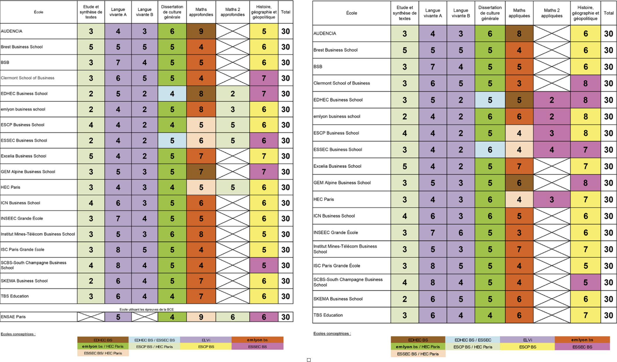 On remarque qu’à HEC, comme dans la plupart des écoles, les coefficients sont plus importants en Maths Approfondies (coefficient 10 sur 30) qu’en Maths Appliquées (coefficient 7 sur 30).